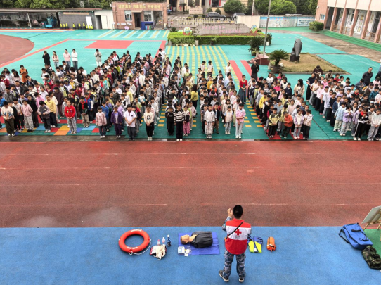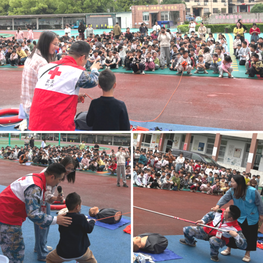 本次活动最具分量、最触动人心的环节,当属浙江省红十字会应急救护二级讲师李雄亮带来的专业警示宣讲。李雄亮讲师结合多年应急救援与安全教育经验,列举本地及周边真实溺水案例,用沉痛教训破除三大常见安全误区,句句直击人心,全场师生凝神静听、深受触动。 误区一:不下水就没有危险?岸边湿滑,一步失足即生死相隔 李雄亮讲师严肃警示:很多人误以为只有下水游泳才会溺水,事实远非如此。河流、水库、池塘、沟渠、景观池等野外水域,岸边泥土长期浸泡松软湿滑,孩子即便只是在岸边行走、捡拾物品、追逐玩耍、探身观望,都可能因脚底打滑、重心不稳瞬间落水。落水后惊慌失措、体力不支、无人及时救援,短短几分钟就可能失去生命。水边无小事,一步之遥,便是生死界限。 误区二:有游泳圈就万无一失?玩具不是救生装备,危险藏在“安全感”里 “游泳圈≠救生圈!”李雄亮讲师反复强调。市面上常见的充气游泳圈属于水上玩具,并非专业救生器材,容易出现侧翻、滑落、漏气、爆裂等情况。孩子在水中一旦失去平衡,从游泳圈中滑落,便会直接呛水、下沉。多地曾发生儿童携带游泳圈在野外水域游玩,因水流、地形、身体失衡导致圈体翻转,最终溺水的悲剧。看似可靠的“保护”,往往成为最隐蔽的危险。 误区三:有大人陪同就绝对安全?一秒分心,终生遗憾 李雄亮讲师沉痛讲述:大量溺水事故发生时,家长就在现场。浅水可淹人,分心即夺命。监护人低头看手机、转身接电话、与旁人交谈、短暂挪开视线,都可能让孩子在几秒内陷入险境。曾有孩子在浅水区玩耍,家长只顾拍照,孩子滑倒呛水,等发现时已错失最佳救援时间。 溺水不等人,监护无空档,安全无侥幸。宣讲现场,李雄亮讲师还通过模型演示、互动问答,细致讲解危险水域识别、同伴溺水正确处置方法。他重点强调:遇到他人溺水,坚决不盲目下水、不手拉手施救、不慌乱冲动;牢记“叫、伸、抛”三字施救法,即第一时间大声呼救,寻找竹竿、绳子、泡沫箱、塑料瓶等漂浮物进行远程施救,并及时拨打110、120求助。讲师还简要普及心肺复苏(CPR)常识,让师生明白“黄金救援时间”的重要性,提升自救互救能力。