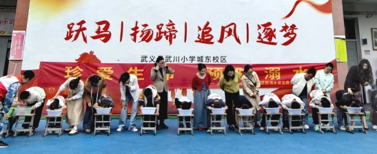 春夏交替,气温回升,青少年溺水事故进入高发、易发期。为切实筑牢校园安全防线,4月14日上午,浙江省武义县武川小学城东校区隆重举行2026年学校防溺水安全教育启动仪式。本次活动特邀武义县红十字会应急救护讲师、武义县熟溪街道民生服务站志愿者亲临指导,全校师生齐聚操场,以案例警示、沉浸式体验、专业宣讲、集体宣誓、签名践诺等环节,为孩子们带来一堂直击心灵、震撼人心的生命安全教育课。一堂“憋气课”,千般“警示言”,这场仪式不仅教育学生,更警醒家长。